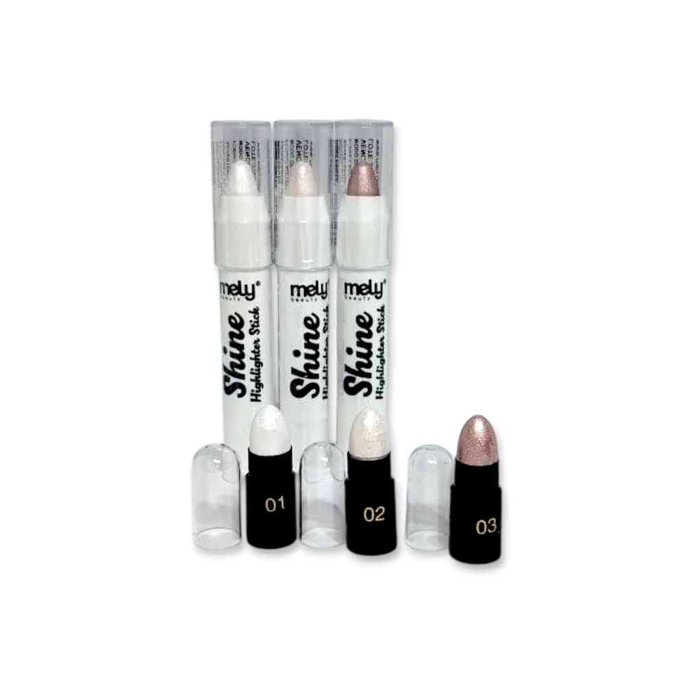 Iluminador en barra 3 colores formato sólido, cremoso o en stick, que se aplica directamente sobre la piel para crear un efecto luminoso en zonas específicas del rostro y cuerpo