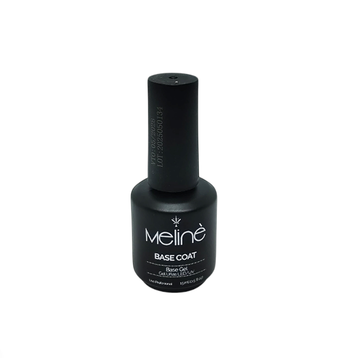 El Base Coat de Meline es un esmalte en gel de uso semipermanente que se aplica antes del color para proteger la uña natural, mejorar la adherencia del esmalte y prevenir que el pigmento la tiña o la amarillee. Sirve como el primer paso en una manicura de larga duración, crea una base uniforme para el esmalte de color y debe curarse bajo una lámpara UV o LED para sellar y asegurar la durabilidad del acabado