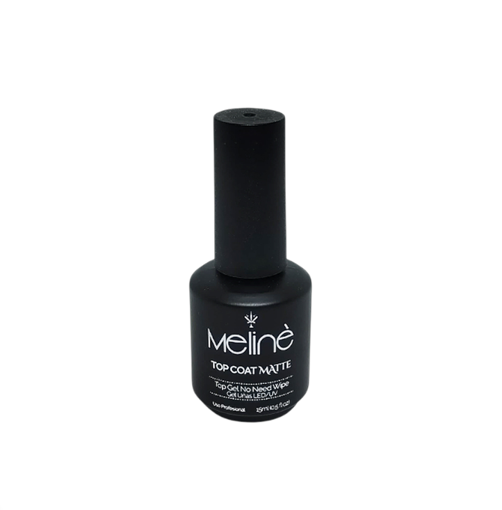El Meline Top Coat Matte es un esmalte semipermanente transparente que, al aplicarse como capa final, elimina el brillo del esmalte de color para lograr un acabado mate o aterciopelado. Sirve para transformar cualquier color de esmalte en un tono sofisticado y moderno, protegiendo el esmaltado subyacente y prolongando su duración