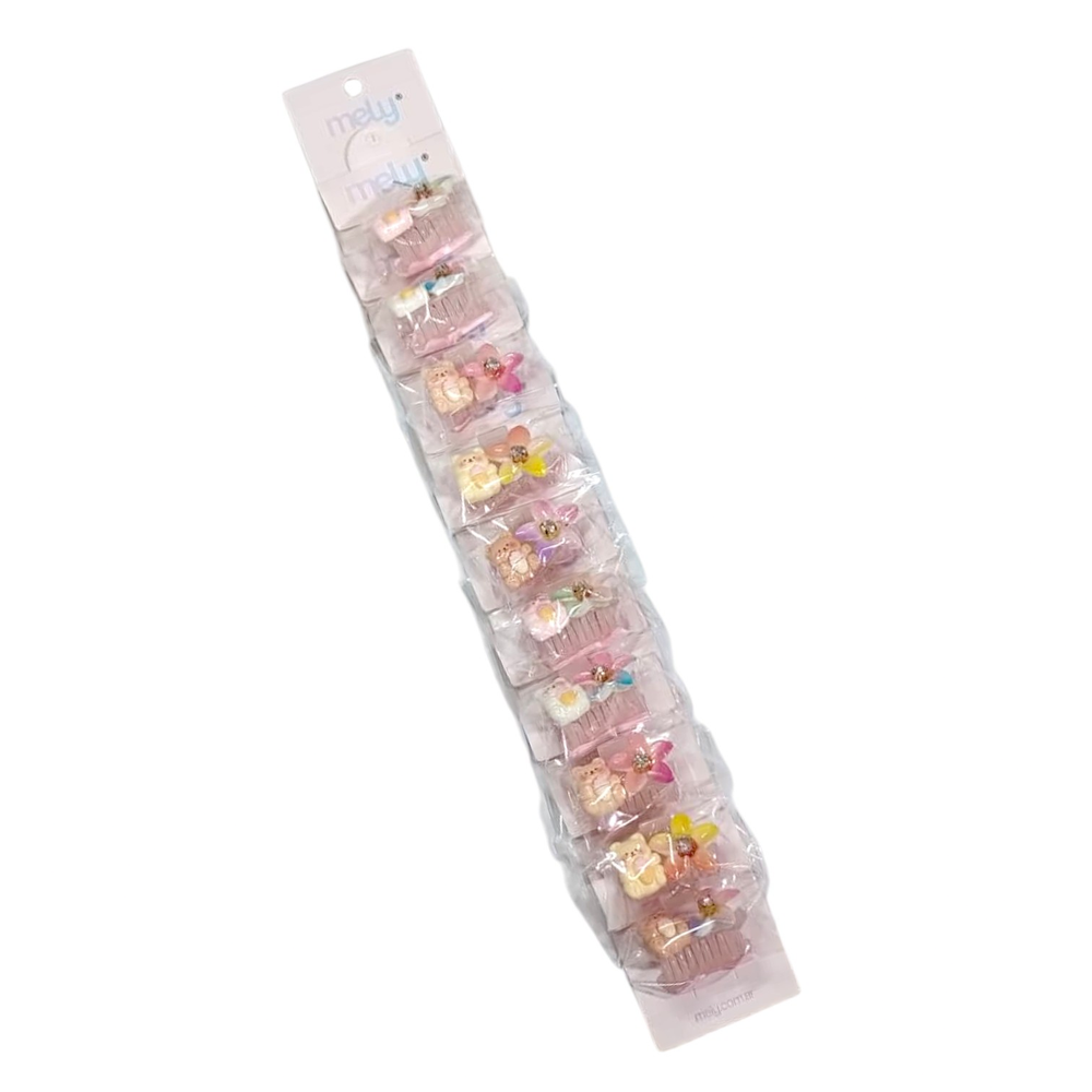 Pack Hebillas Transparentes Con Ositos Y Flores Mely