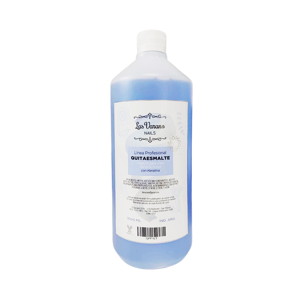 El "quitaesmaltes sin acetona Las Varano" es un producto para remover el esmalte de uñas, diseñado para ser suave y evitar el daño a la uña natural. Se diferencia del removedor UV de la misma marca, que está hecho para quitar esmaltes semipermanentes y acrílicos y contiene un porcentaje de acetona